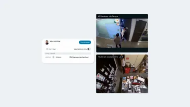 Third, we’ve improved browsing through context camera footage associated with historical access control events. Simply mouse over an access control event card, and the card will expand to show video playback of the footage surrounding the event. You can navigate forward or backward with a time selector, or open the footage in full screen with a click.