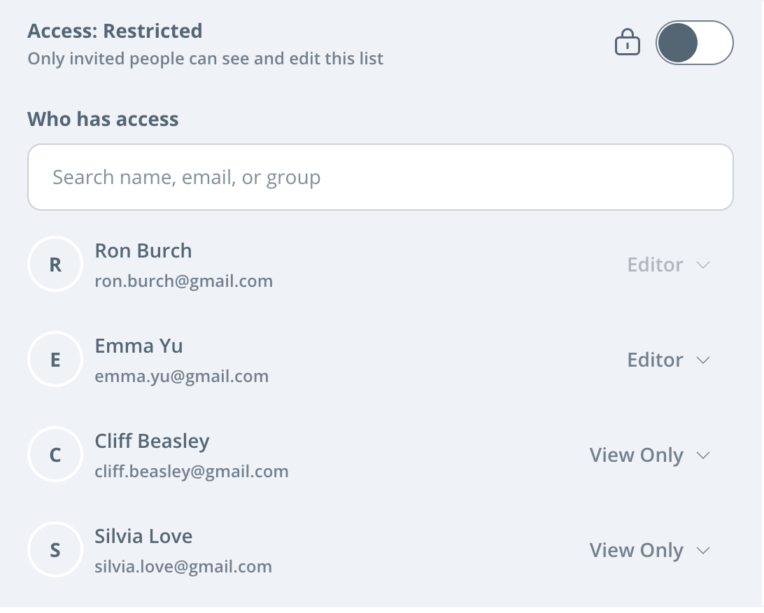 To learn more about how to create People Lists, allocate distinct viewing and managing permissions, and more, see the user guide and FAQ.