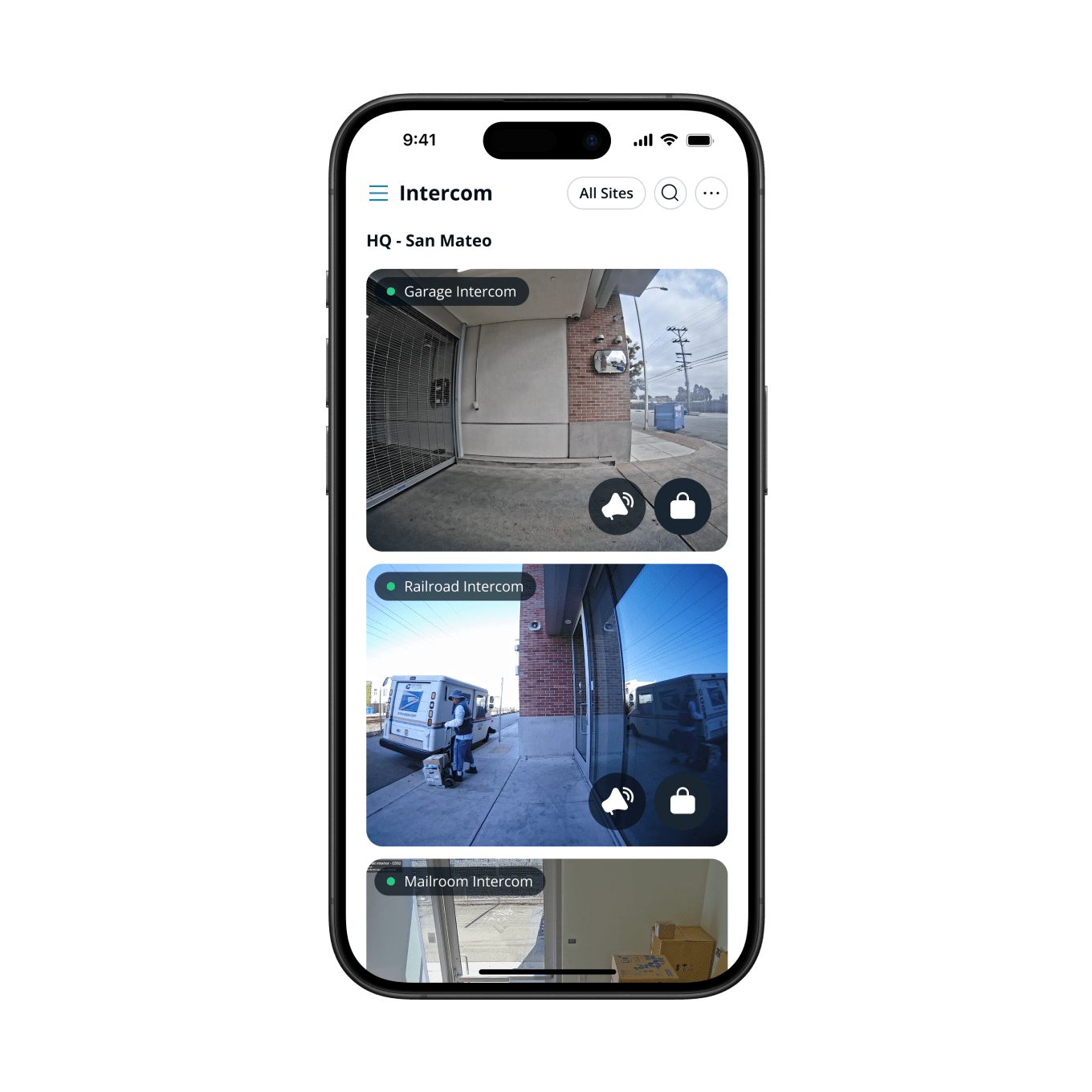 Receive calls, unlock access-controlled doors, and view live intercom call footage from a mobile phone