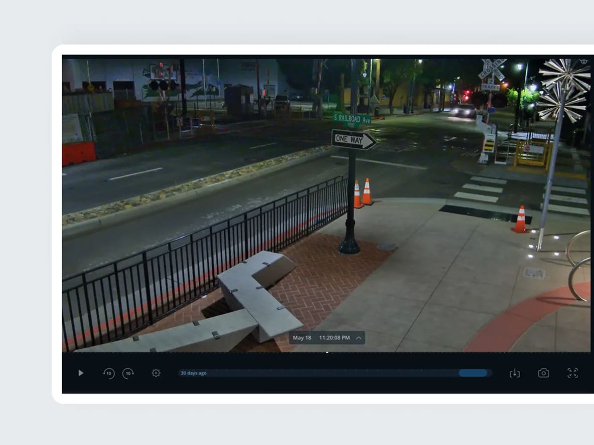Nutzen Sie Bullet-Kameras, um Kennzeichen zu erfassen, Fahrzeuge anhand des Kennzeichens zu suchen und automatische Alarmmeldungen für Kennzeichen von besonderem Interesse einzurichten. Die Kennzeichenerkennungslösung von Verkada kann Nummernschilder an Fahrzeugen erkennen, die sich mit einer Geschwindigkeit von bis zu 80 mph / 128 km/h bewegen, und zwar über 3 Spuren hinweg.