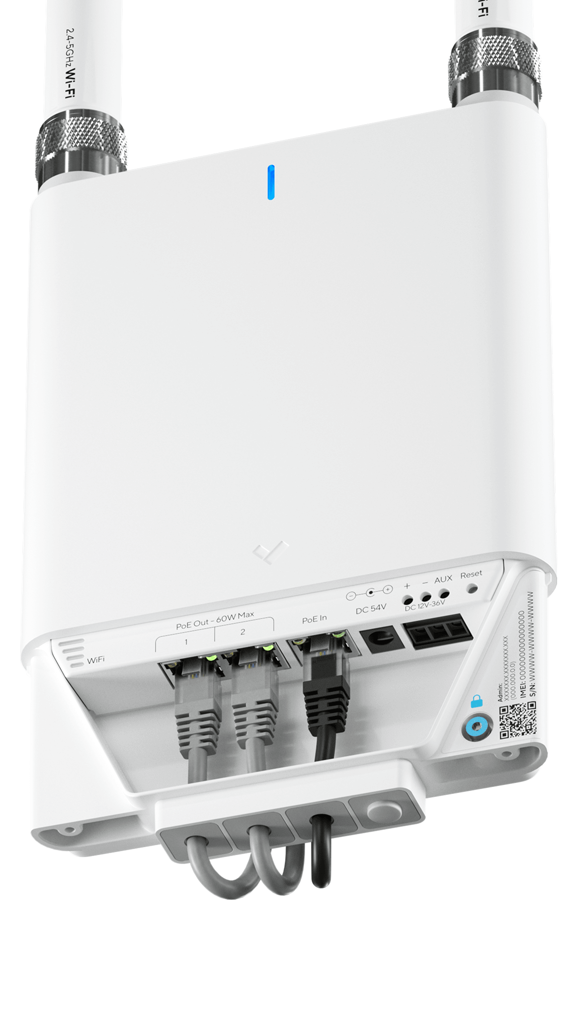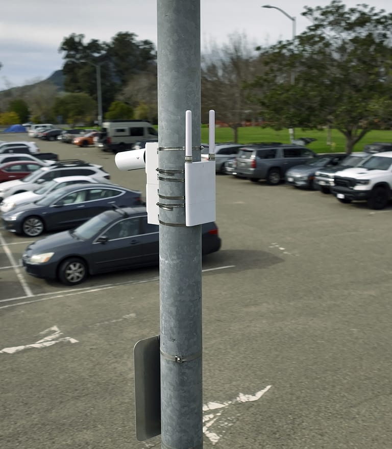 Outdoor Wi-Fi gateway for deploying Verkada in hard-to-wire places such as parking lots, gates, and outdoor premises.