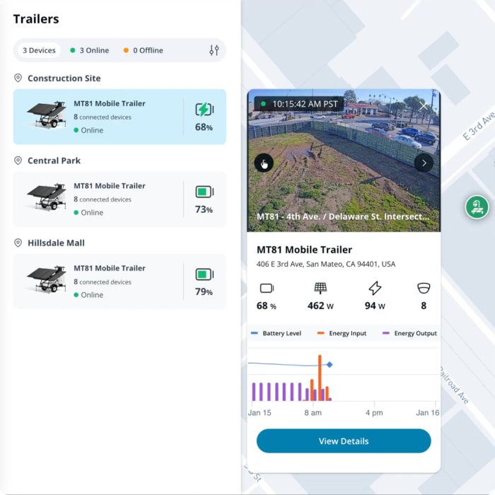 Verkada Command에서 모든 게이트웨이, 트레일러, 연결된 장치에 원격으로 접속할 수 있습니다. 전체적인 배포를 확인하고, 선제적인 상태 경고를 수신하고, 조사를 실행하는 등 단일 화면에서 모든 작업이 가능합니다.