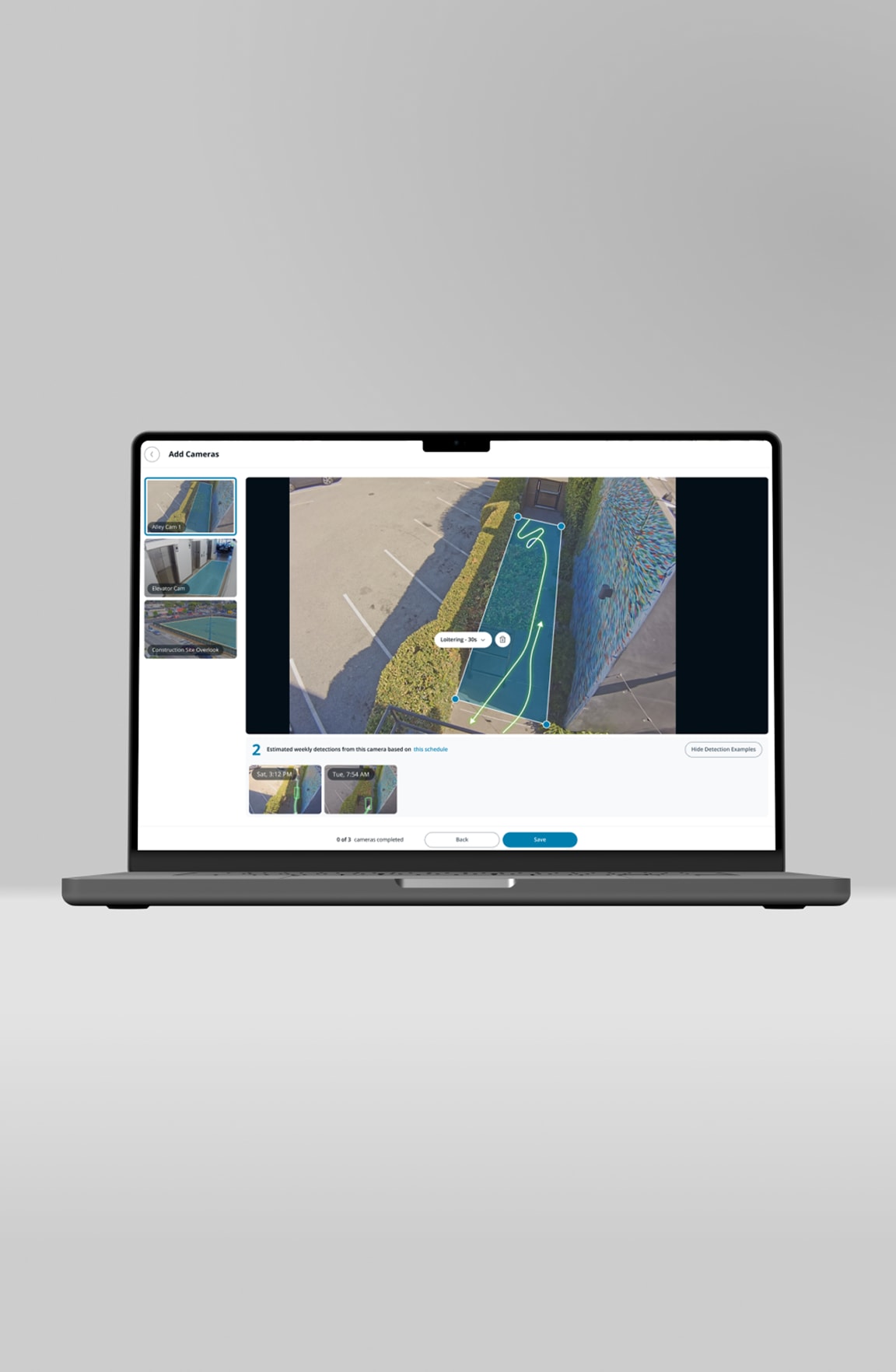 Ideal for gated parking lots or fenced properties, Verkada cameras serve as smart alarm triggers, detecting unusual activity like after-hours people or vehicles, loitering, and when someone crosses a designated virtual boundary. When an alarm is triggered, live agents can verify footage in real time, talk down to scare off intruders, and accelerate police response.