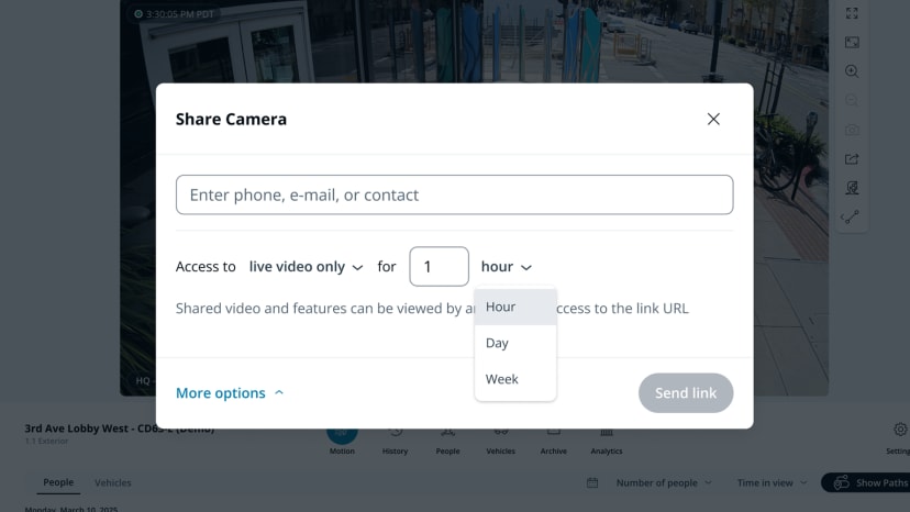 Give law enforcement instant access to crucial footage. Easily share archived video evidence from Verkada cameras or third-party cameras with police through SMS or a direct link, providing critical context around past incidents and aiding in quicker case resolution.