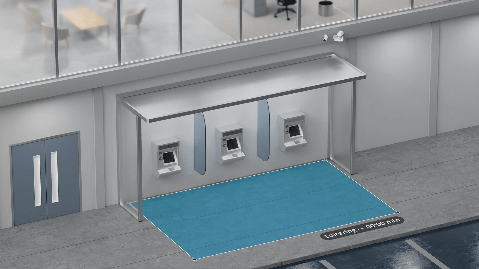 Protect high-risk spaces like ATMs and bank entrances with Verkada cameras that double as alarm triggers for motion, line crossings, and loitering. Leverage AI-driven video analytics that alert you to suspicious behavior — like someone sleeping in an ATM vestibule — while ignoring normal customer activity. The moment suspicious behavior is detected, AI-powered talk down delivers audio messages in a human-like voice to deter suspects before escalating to a live agent who can dispatch police.