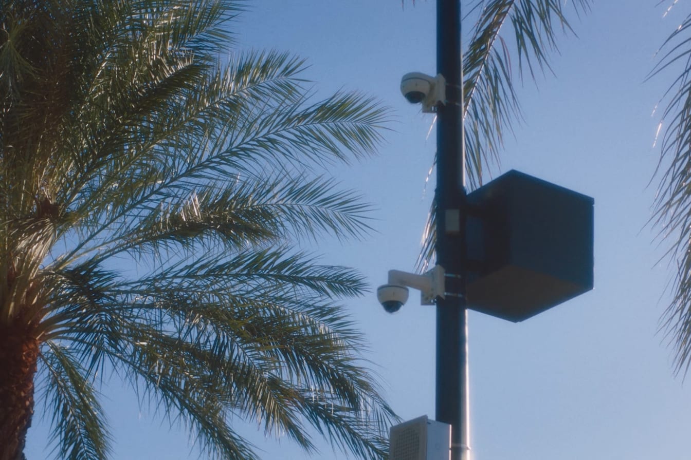 Deploy LPR cameras alongside context cameras on streetlights to monitor moving traffic and capture license plates, providing valuable insights to help investigate crimes and traffic incidents. Maximize coverage with Verkada pan-tilt-zoom (PTZ) cameras, which can monitor expansive areas such as street intersections, transit terminals, and municipal airports. Sentry mode automatically detects and zooms in on individuals, capturing high-resolution images for clear identification.